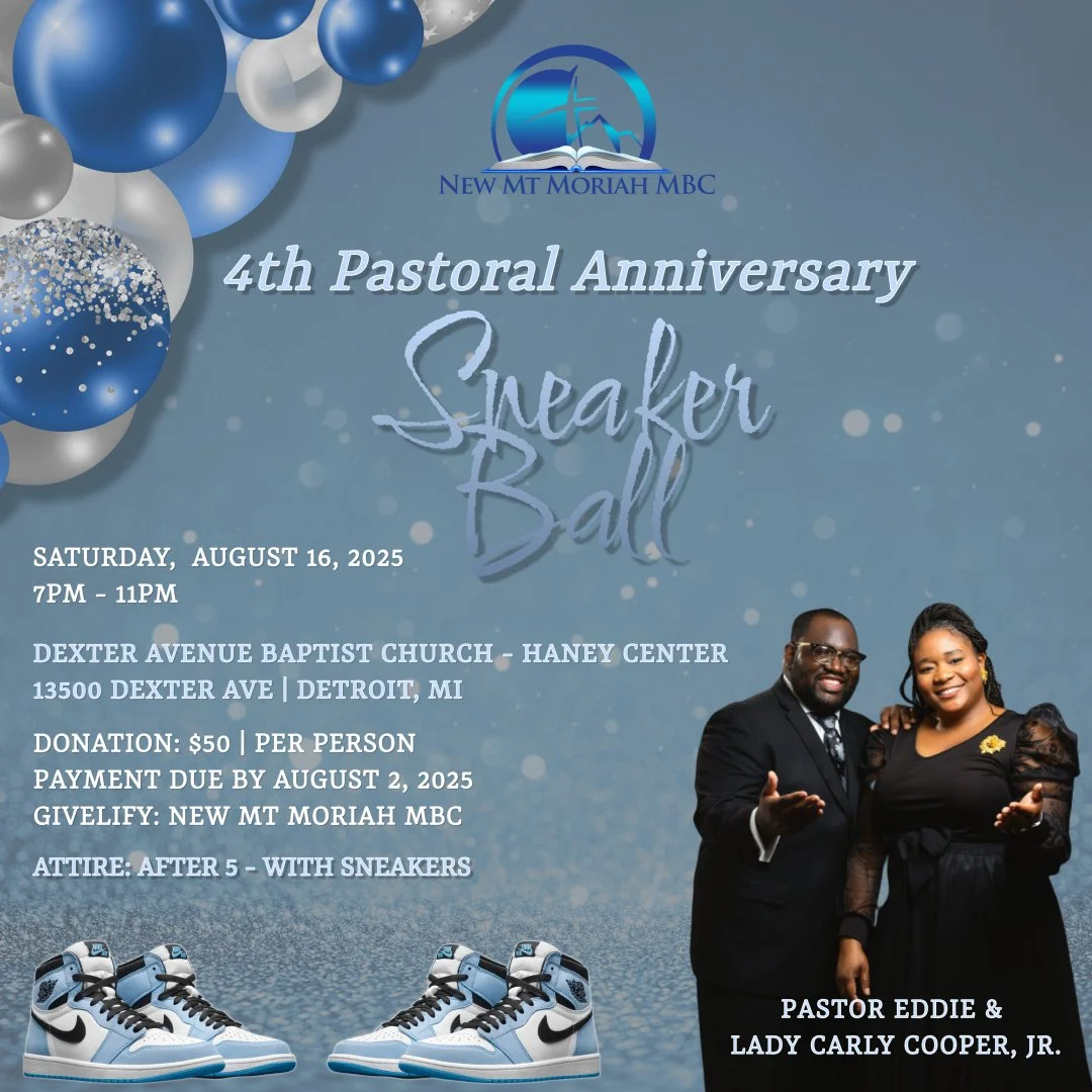 Get ready! Get ready! Get ready! We cordially invite you to join us on Saturday, August 16, 2025, as we celebrate Pastor Cooper’s 4th Pastoral Anniversary with a Sneaker Ball. Attire is “After 5 with Sneakers”. Get ready to have a good time in the Lord! All are welcome! Tickets are $50/Adults, $10/Youth.
